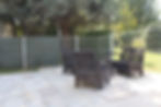 Mobiliario exterior: hamacas, tumbonas, mesas, sillas y sombrilla.